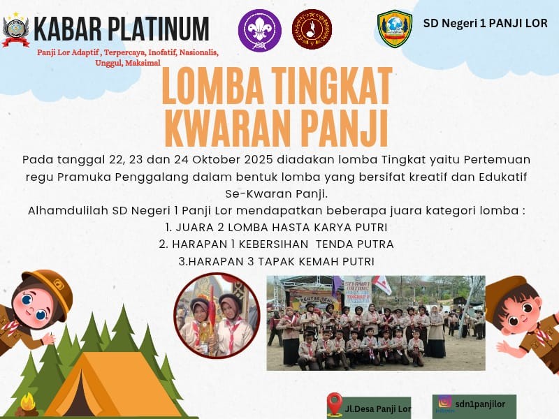 Pada Tanggal 22,23 dan 24 Oktober 2025 diadakan lomba Tingkat kecamatan yaitu Pertemuan Regu Pramuka Penggalang dalam bentuk lomba yang bersifat kreatif dan edukatifSe-Kwarran Panji.