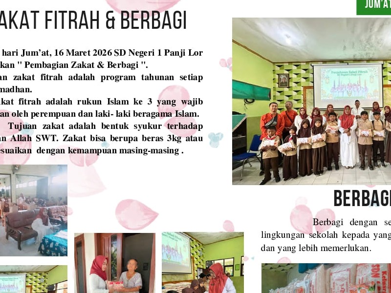 Pada hari Jum’at, 16 Maret 2026 SD Negeri 1 Panji Lor mengadakan " Pembagian Zakat & Berbagi ".